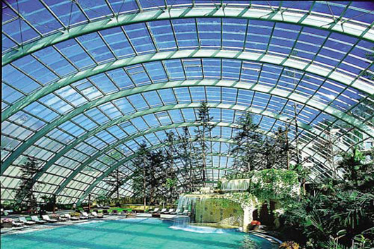 在哥倫布發現新大陸后,工業革命前,諸多熱帶植物花卉及水果進入歐洲,歐洲的氣候寒冷無法適應它的生產,而歐洲的皇宮貴族非常喜歡享受這種東西,所以皇家的能工巧匠們建造了一些溫室以滿足貴族們的需求。后來人們發現這些溫室由于充滿陽光、充滿綠色所以它不僅可以作為溫室養殖熱帶作物,并且能夠形成一個休閑、娛樂、家庭聚會及工作室的一個特殊空間。