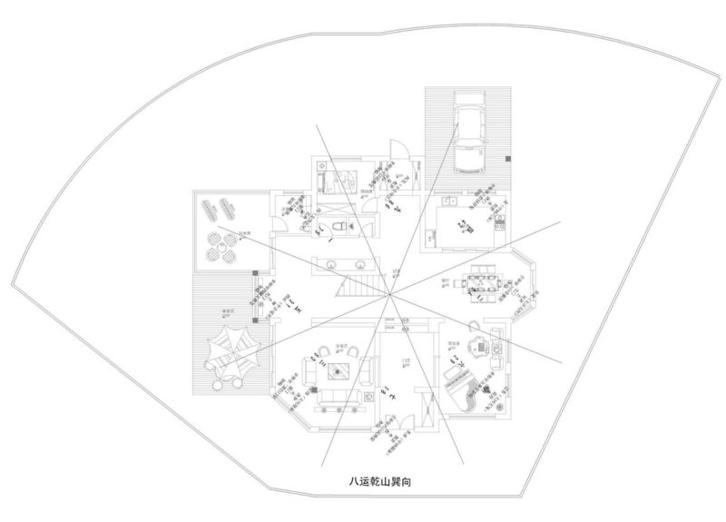 最近應朱女士邀請,對該別墅進行設計規劃,經我們設計團隊,現場勘測及周圍環境參考,將本宅進行八運改造,原為七運戌山辰向,改為八運乾山巽向,為旺山旺向,地運160年。根據甲方具體要求,我們進行土建改造和內部設計規劃,現將前期規劃發布于此,與大家交流分享!